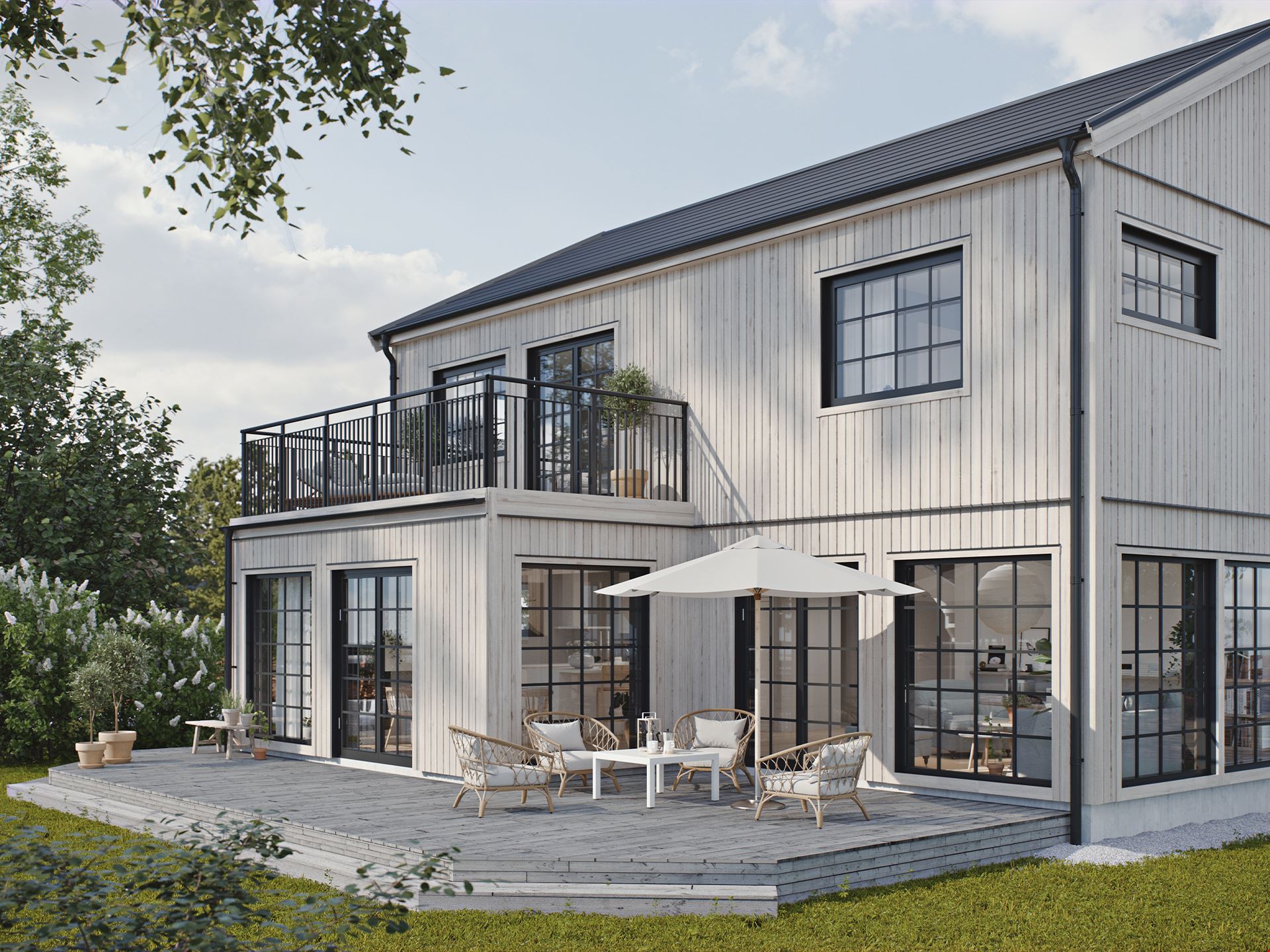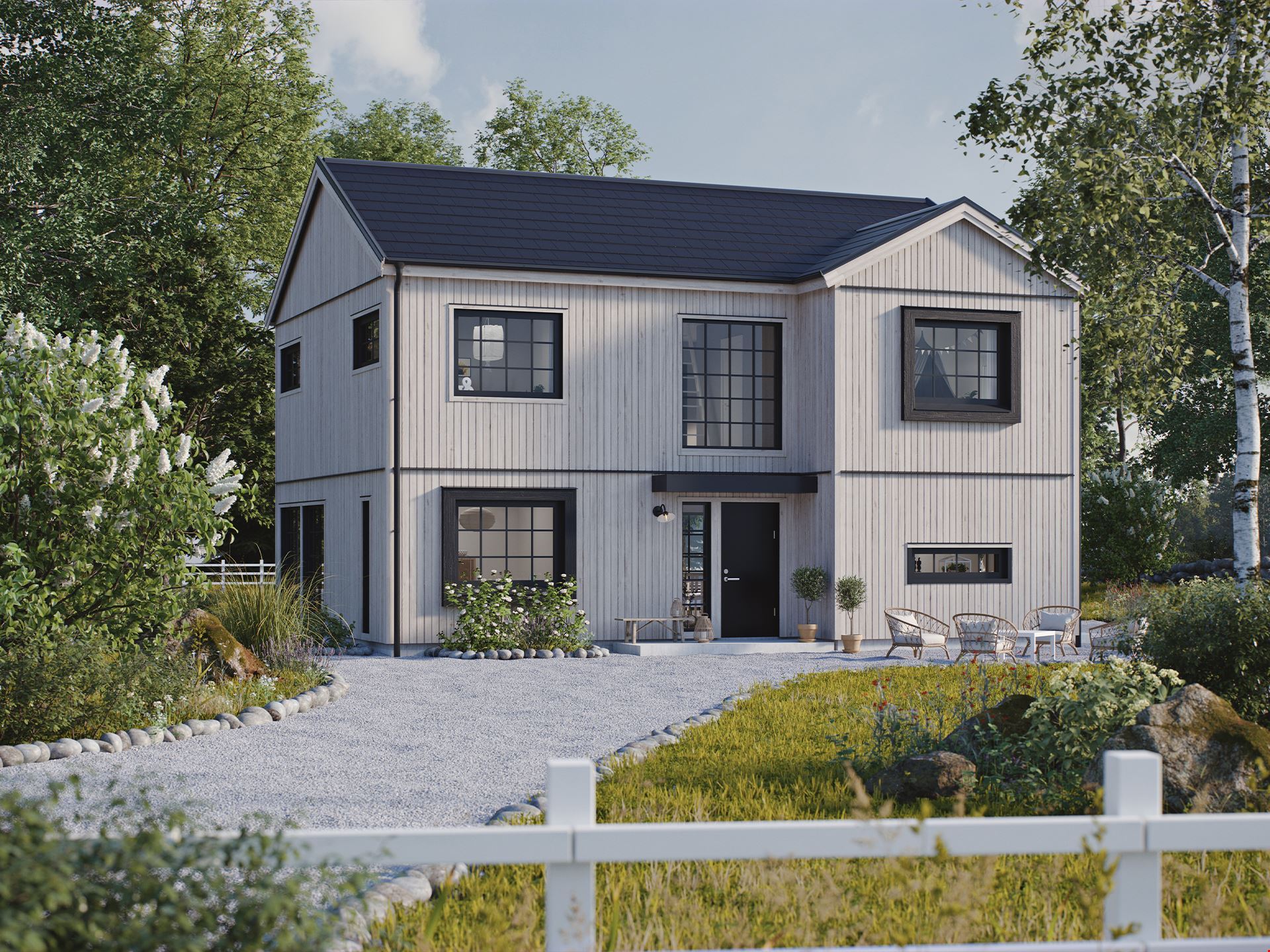På denna tomt rekommenderar vi att du bygger något av våra 1-planshus. Förslagsvis modellen Kilsten som passar både den lilla barnfamiljen och paret som vill ha gott om plats. Från entrén möts du av husets tre sovrum, med utsikt mot trädgården. Vardagsrummet och köket har en öppen planlösning och härlig kontakt med utsidan via markerade, generösa ljusinsläpp.