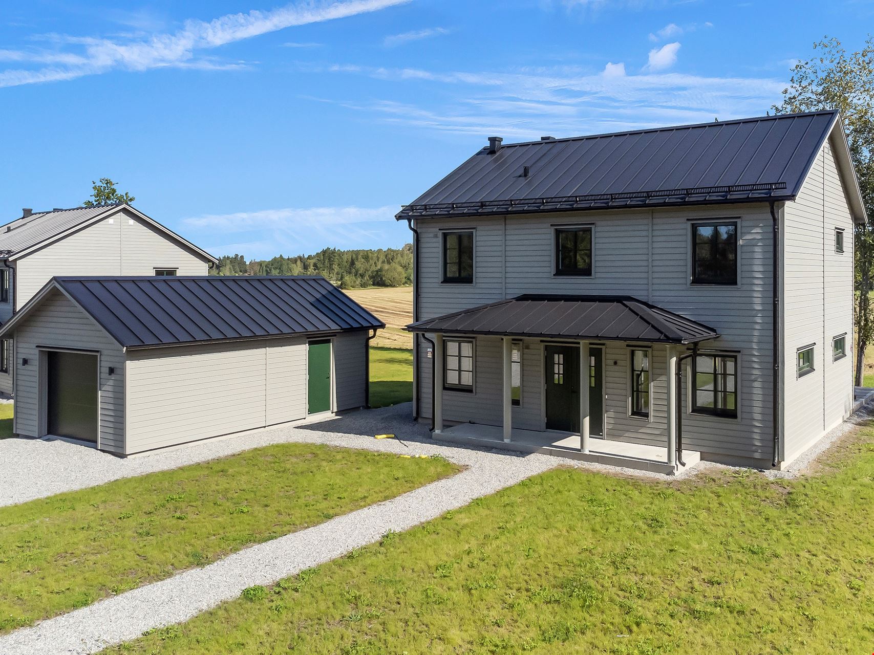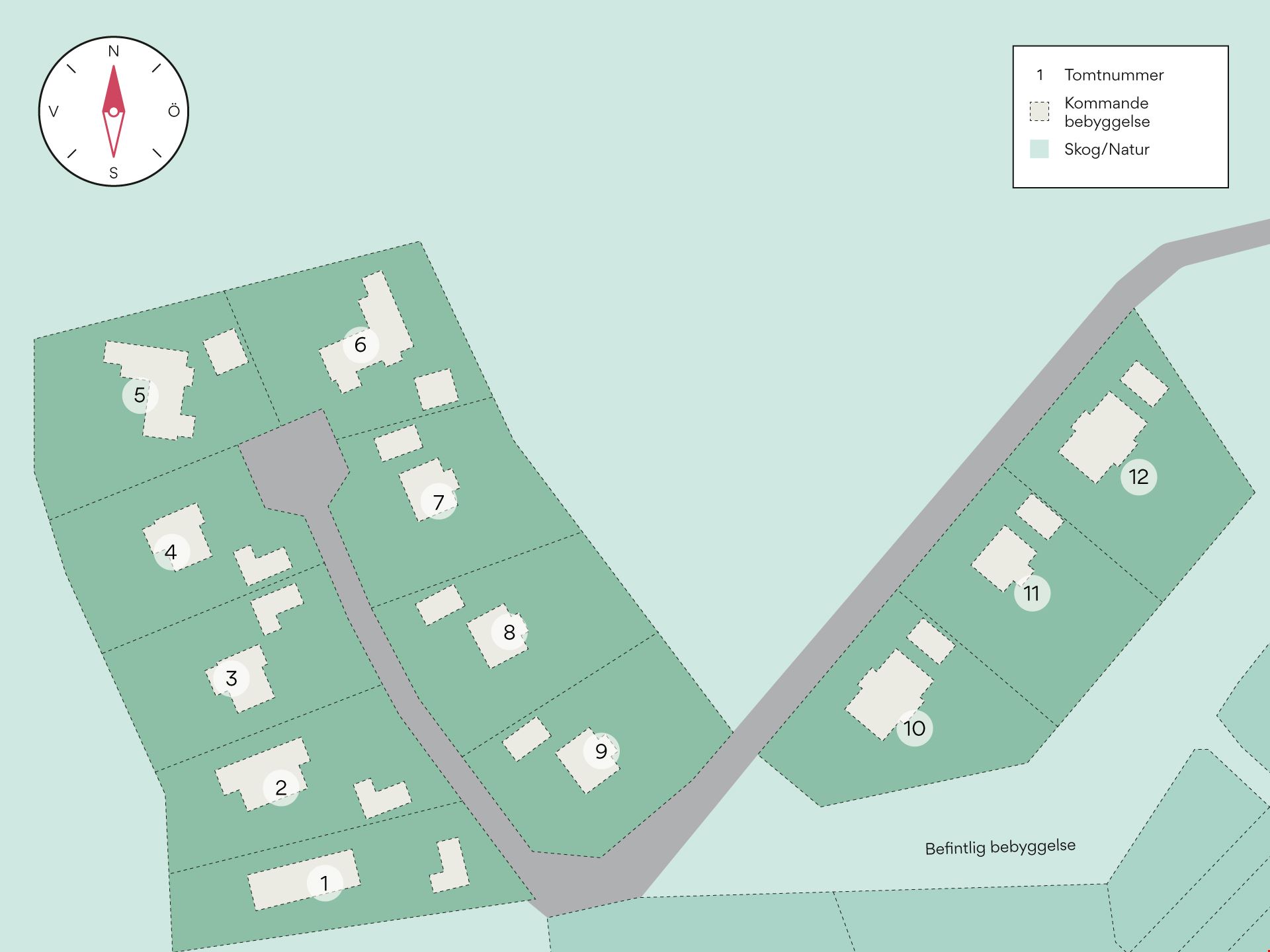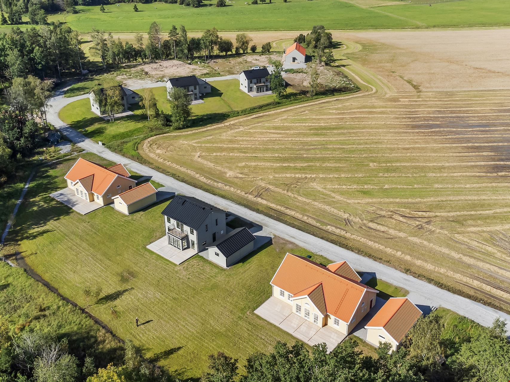 På denna tomt rekommenderar vi att du bygger något av våra 2-planshus. Förslagsvis modellen Klappersten som har stora ljusinsläpp och fina siktlinjer rakt igenom hela huset. Trappan ligger något inskjuten i förhållande till ytterväggen och med sin bjälklagsöppning blir trappan till en skulptural form som låter ljuset flöda mellan de båda våningsplanen.