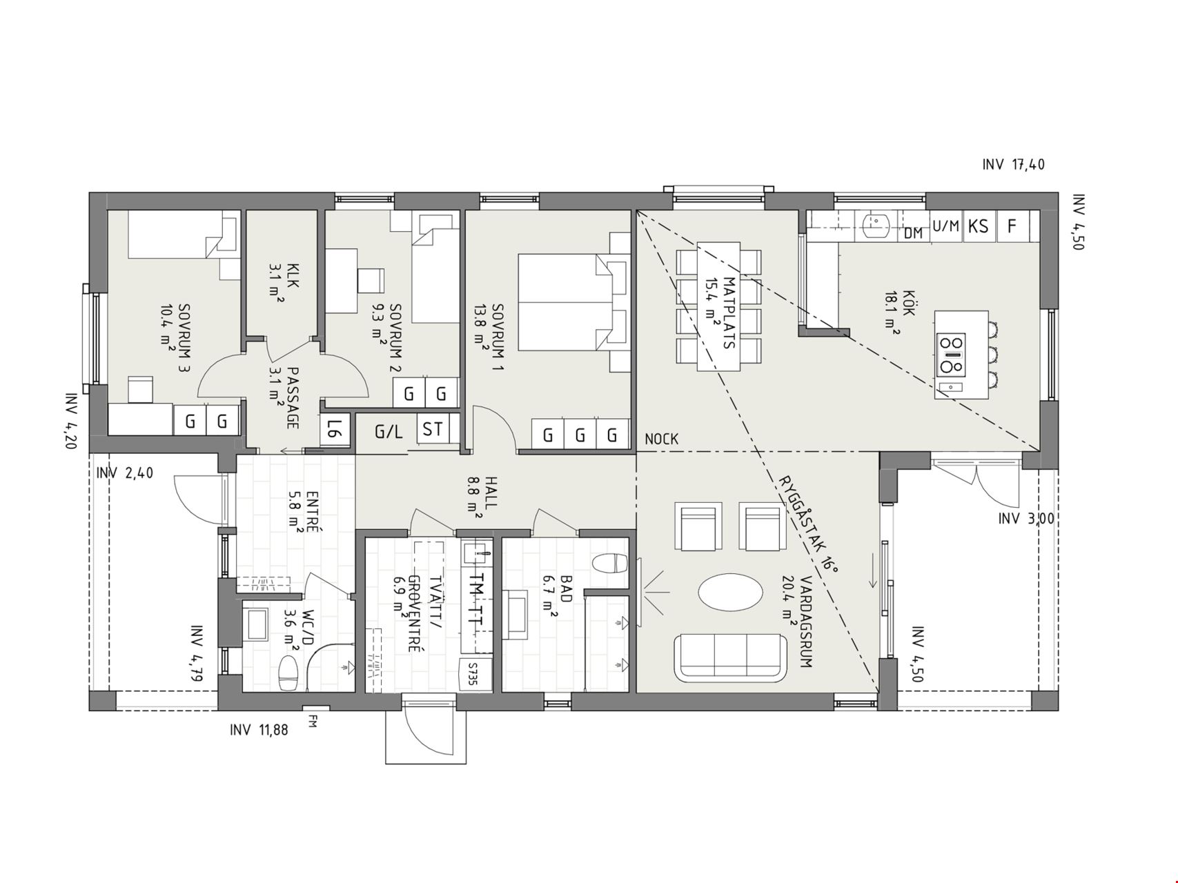 Kilsten är ett elegant enplanshus med generöst ljusinsläpp och en planlösning som verkligen låter dig ta vara på ytan. Med tre sovrum passar huset såväl den mindre barnfamiljen som ett yngre eller äldre par.
