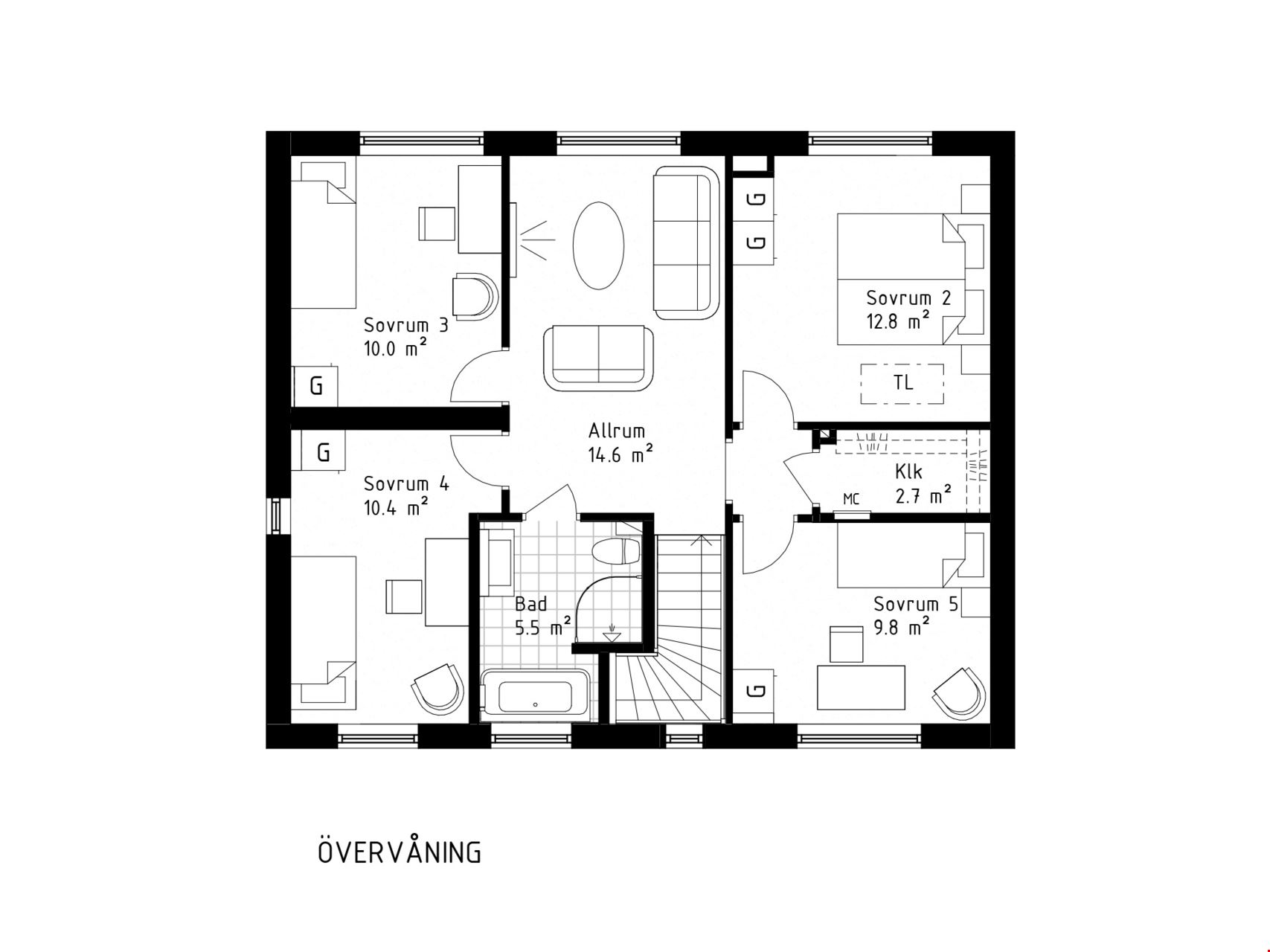 Välkommen in i denna nyproducerade villa om 150 kvm med 6 rum och kök. Smart 150 är en av våra mest populära husmodeller som passar perfekt för den större barnfamiljen då det är inrett med hela fem sovrum. Huset har en modern planlösning med kök och vardagsrum i öppet samband på entréplan. I köket rymmer du en stor matsalsgrupp, här finns det gott om plats för att samla både familj och vänner över mysiga middagar. Det stora föräldrasovrummet ligger på samma plan som sällskapsytorna, med ytterligare fyra generösa sovrum på övervåningen och ett litet allrum. Hallen är rymlig med klinkat golv och direkt innanför groventrén finns tvättstuga med tvättmaskin samt torktumlare.