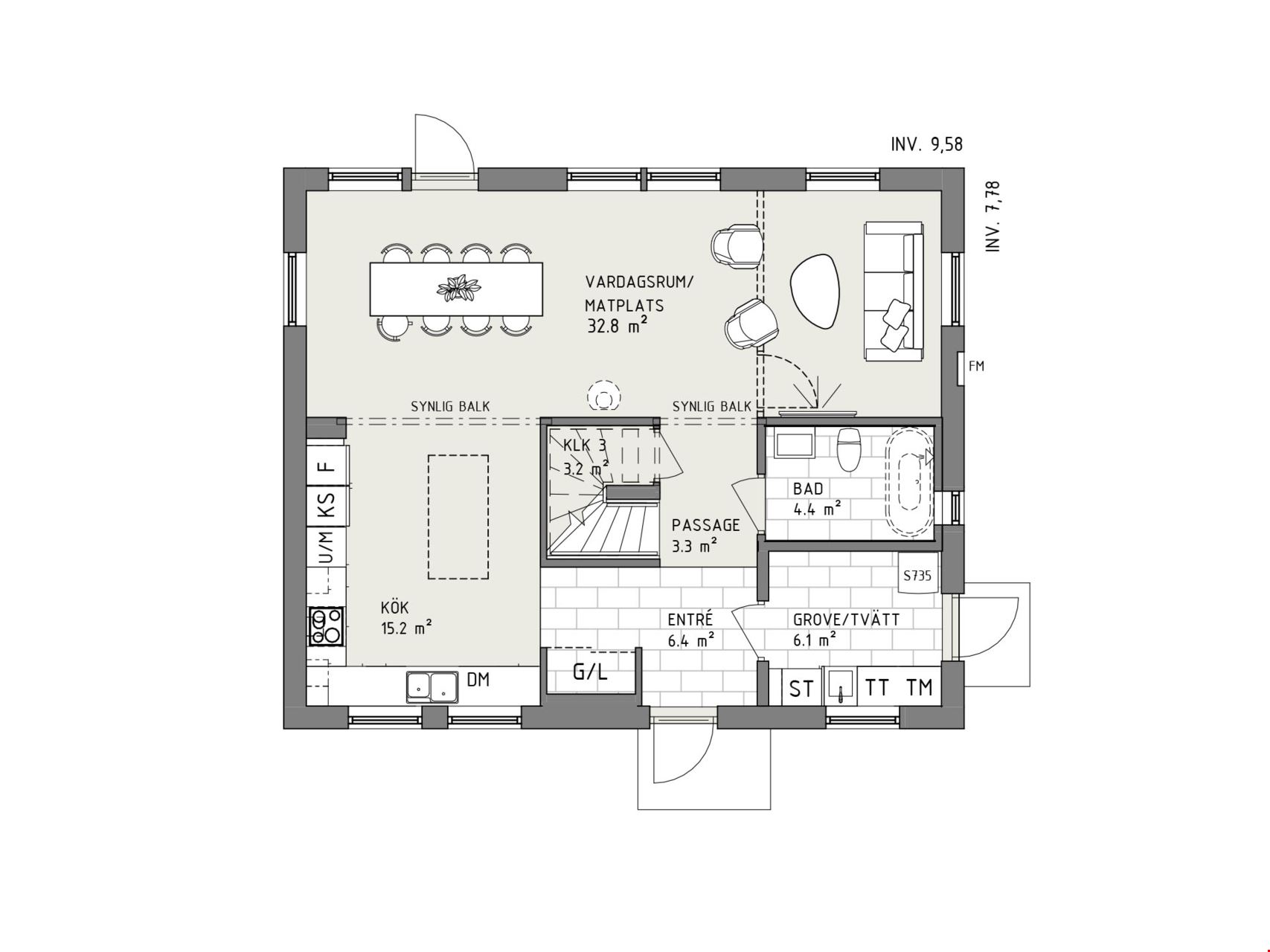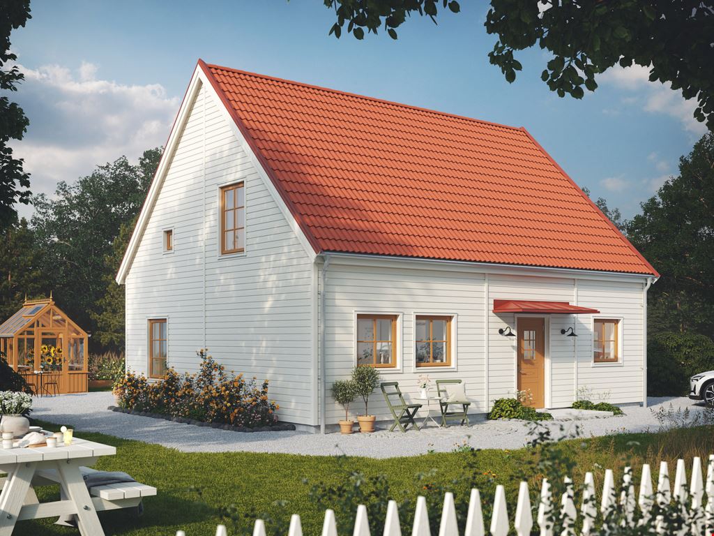 För just denna plats rekommenderar vi vårt smarta enplanshus Smart 128 – ett välplanerat hus med fyra rum och kök, anpassat för både funktion och livskvalitet. Huset erbjuder öppna sociala ytor, tre rymliga sovrum, klädkammare samt en separat tvättstuga med groventré – praktiskt och genomtänkt från början till slut. Med 128 kvadratmeter får du plats för både livet som pågår och det som väntar runt hörnet.