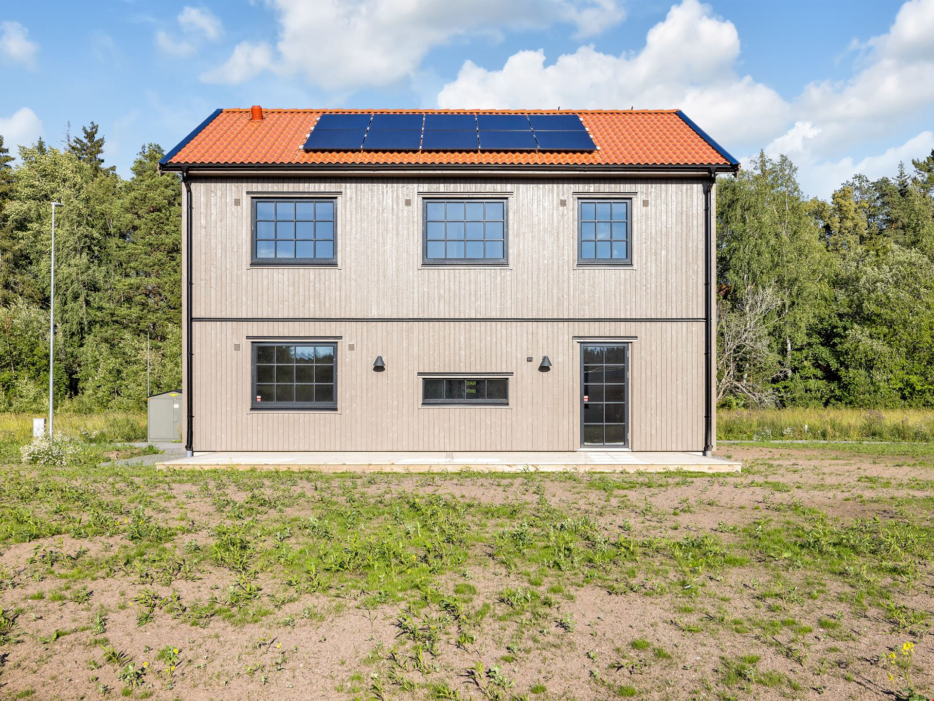 Huset är utrustat med 10 solpaneler från Nibe så att du ska kunna producera din egen el. Det innebär att man blir betydligt mindre sårbar för stigande elpriser. På sommarhalvåret kan solcellerna i många fall täcka hela behovet av hushållsel. Eventuellt överskott kan man dessutom smidigt sälja tillbaka till elbolaget.