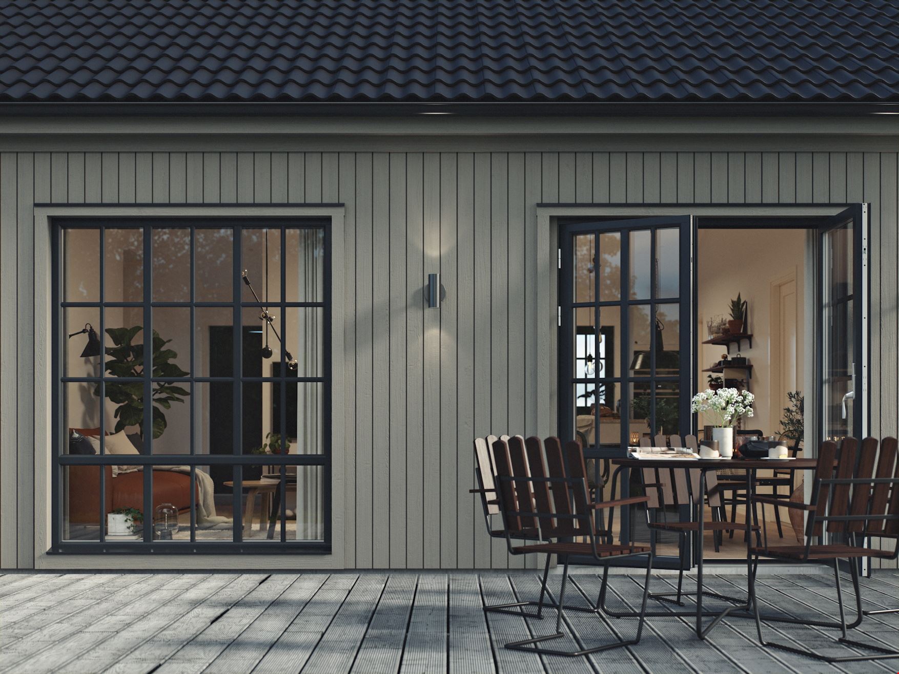 Smart 125 är ett välplanerat enplanshus med 5 rum och kök – perfekt för familjeliv i full fart. Här får du öppen planlösning, tre rymliga sovrum, praktisk klädvård med groventré och väl tilltagna sociala ytor. I industriell stil kombineras rena linjer och stora fönsterpartier med en tuff och tidlös karaktär. Ett stilrent hem med funktion i fokus – där varje kvadratmeter gör jobbet. Smart 125 – där form, funktion och personlighet får plats.