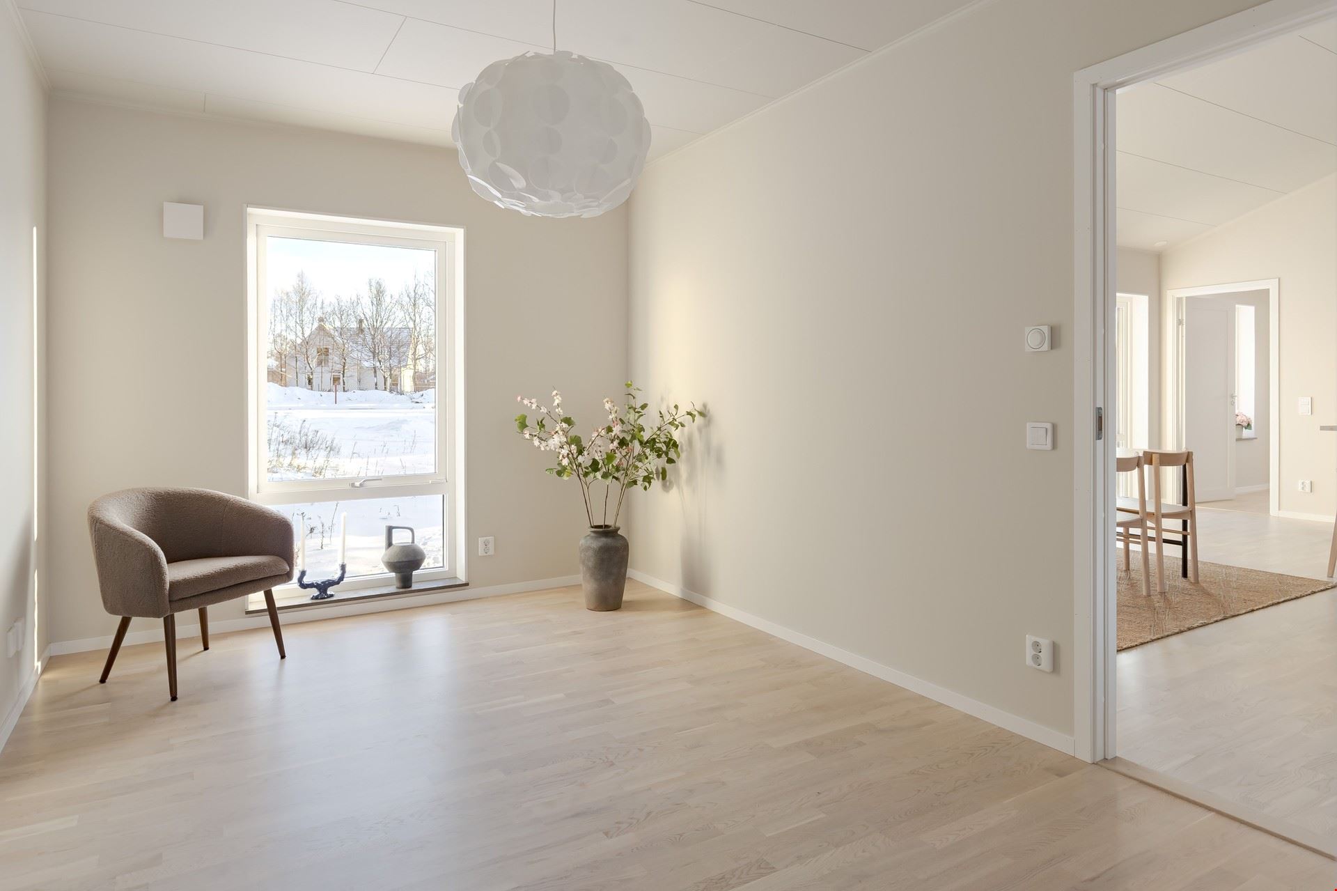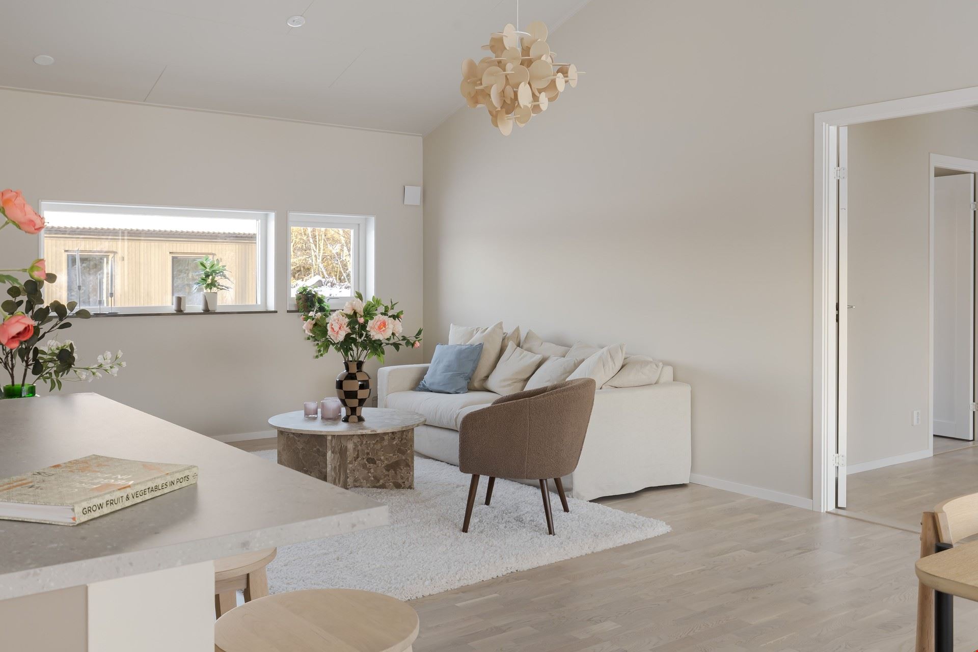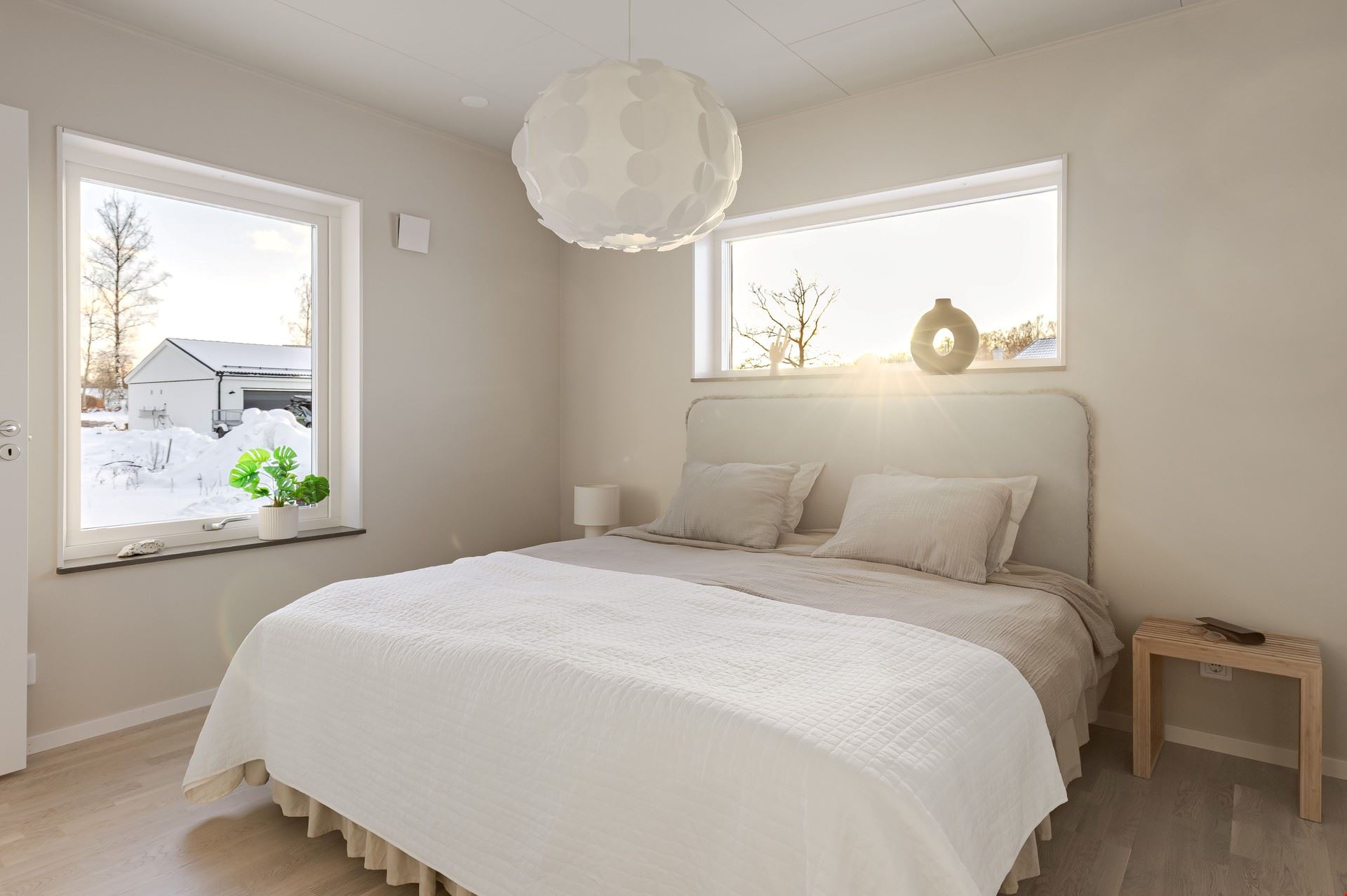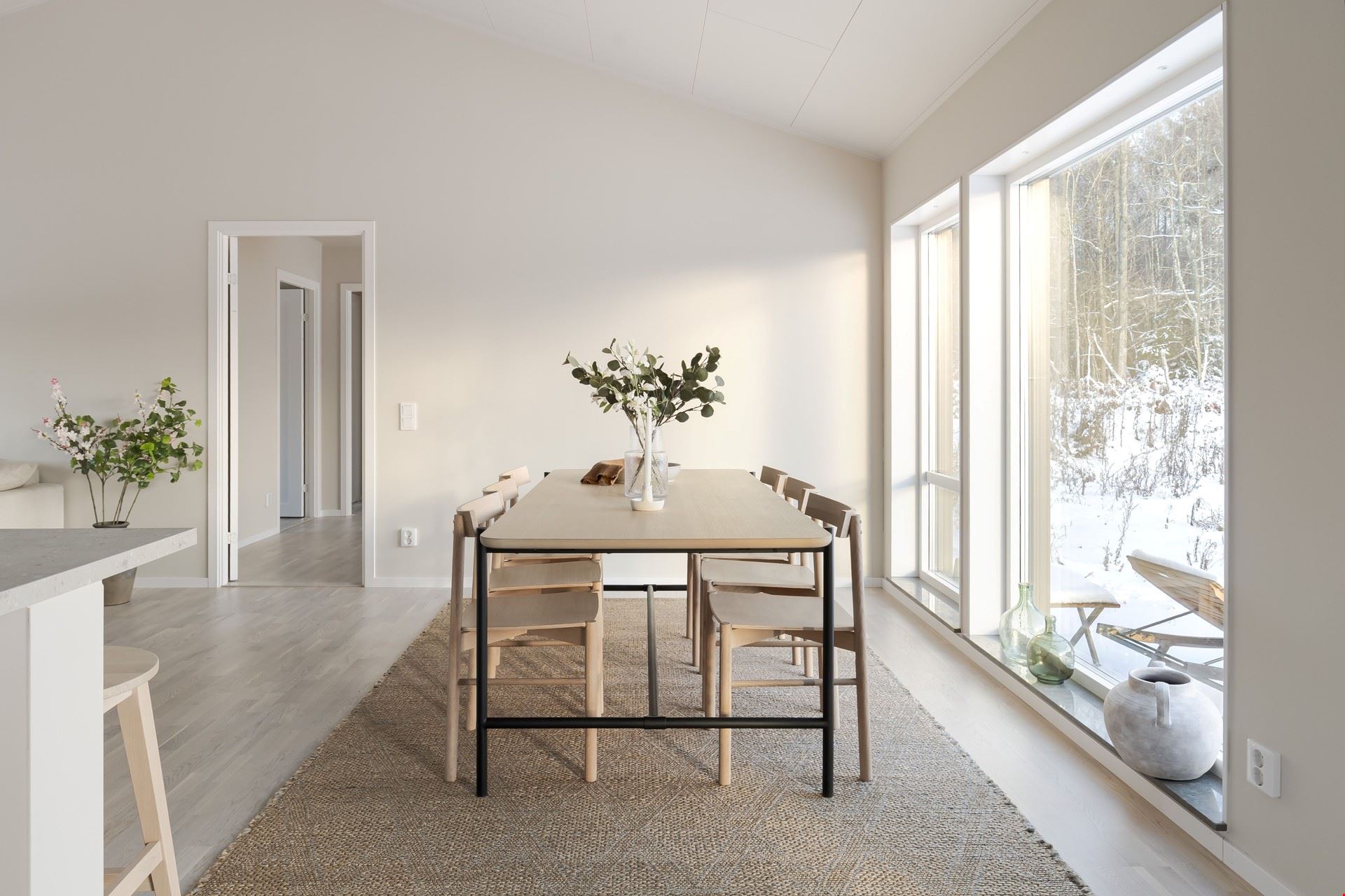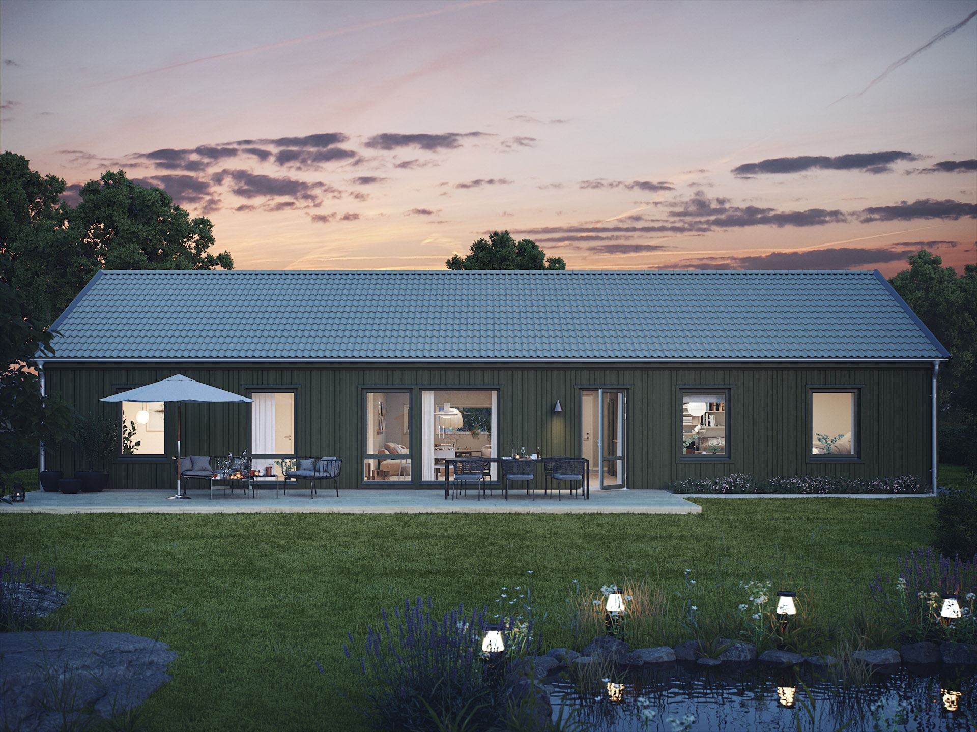 Smart 140 är ett genomtänkt enplanshus där varje kvadratmeter är optimerad för funktion och trivsel. Här välkomnas du av en rymlig entré med vacker siktlinje genom hela huset. Det öppna vardagsrummet och köket skapar en naturlig samlingspunkt med stora fönster som släpper in rikligt med ljus – och bjuder på utsikt över det öländska landskapet.