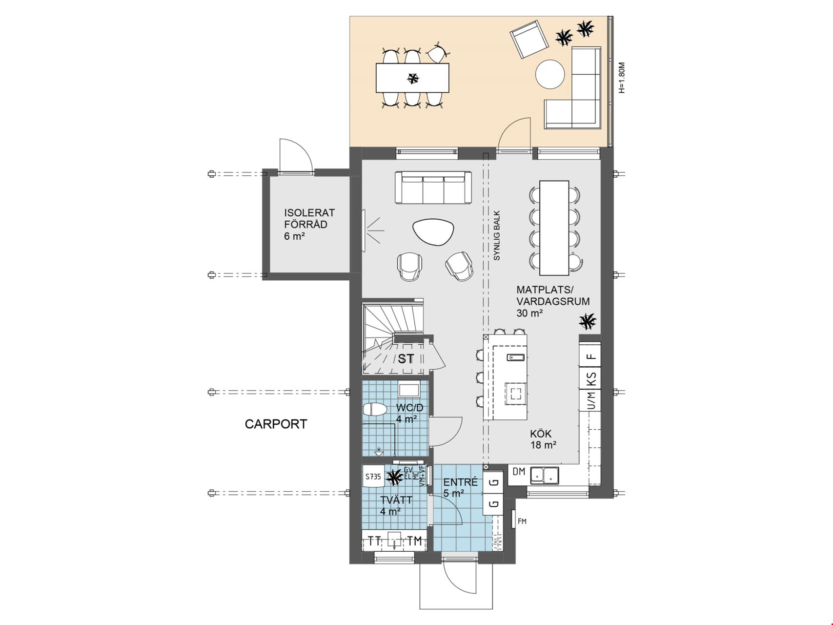 Välkommen till ett välplanerat tvåplanshus på 132 kvadratmeter, där vardagens funktion möter plats för umgänge och avkoppling. På entréplanet samlas kök, matplats och vardagsrum i en öppen planlösning som bjuder in till gemenskap, medan tre sovrum och ett allrum på övervåningen ger lugn och avskildhet. Ett hem som passar lika bra för den växande familjen som för dig som vill ha gott om plats för både vardag och helg.
