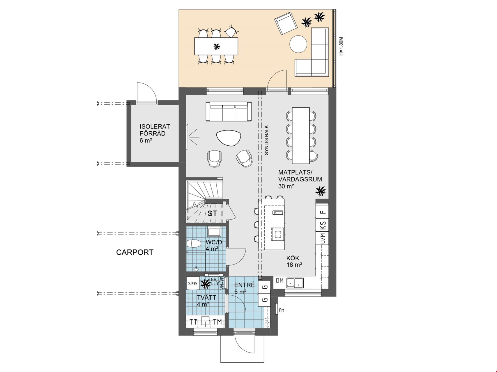 Välkommen till ett välplanerat tvåplanshus på 132 kvadratmeter, där vardagens funktion möter plats för umgänge och avkoppling. På entréplanet samlas kök, matplats och vardagsrum i en öppen planlösning som bjuder in till gemenskap, medan tre sovrum och ett allrum på övervåningen ger lugn och avskildhet. Ett hem som passar lika bra för den växande familjen som för dig som vill ha gott om plats för både vardag och helg.