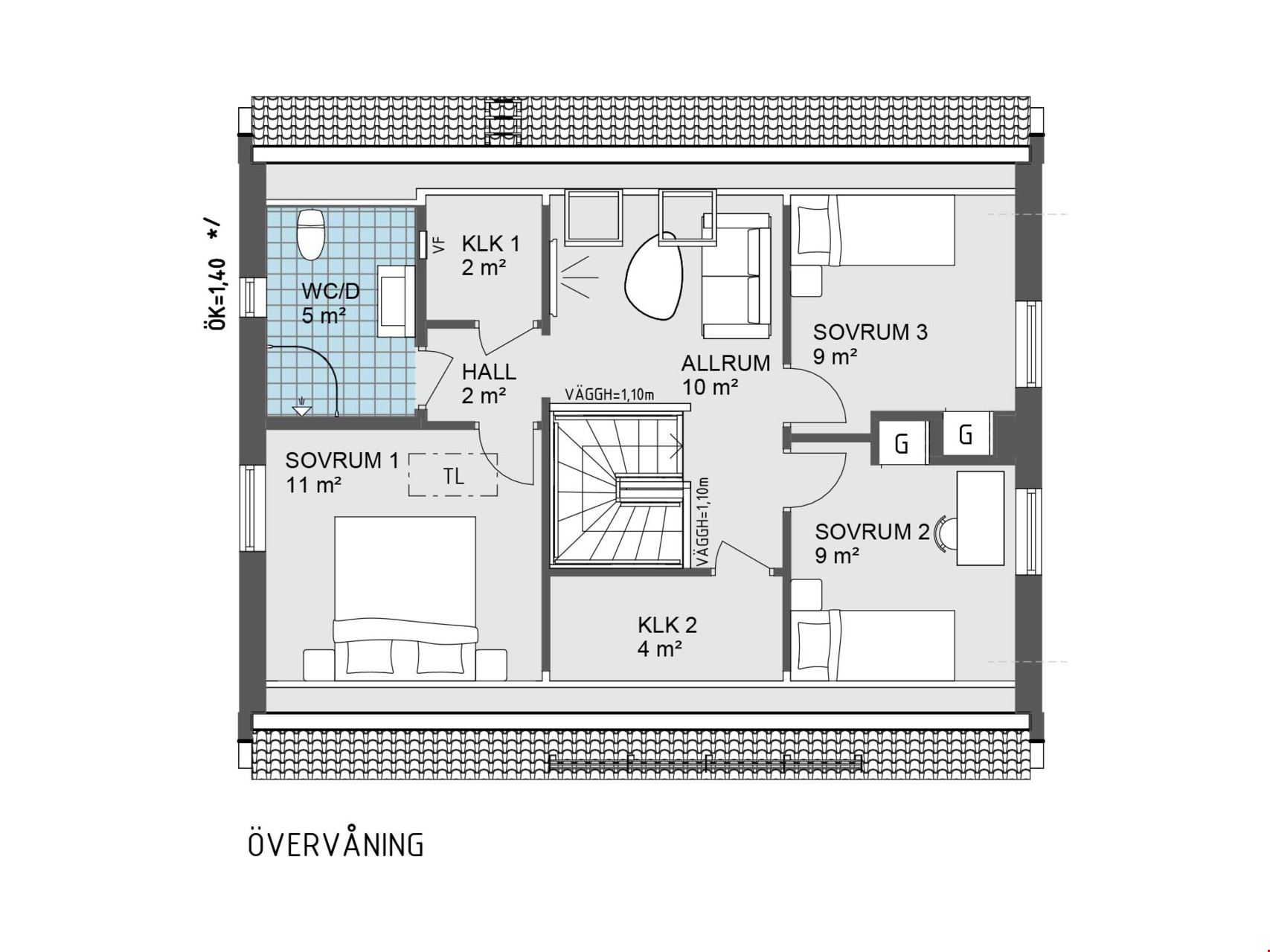 På övervåningen väntar tre rymliga sovrum, allrum och ytterligare ett badrum – en tydlig plats för privatlivet. Master bedroom har extra gott om yta och smart förvaring.