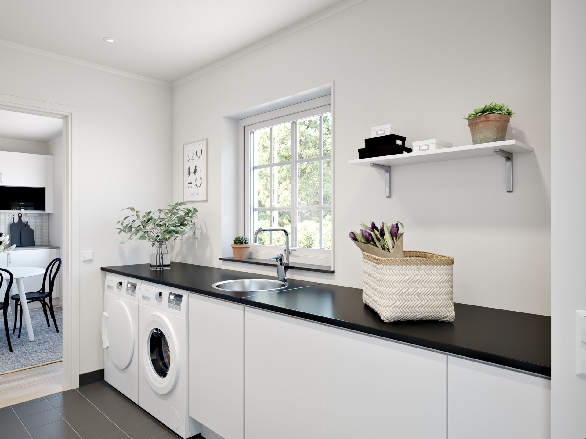 Groventré med tvätt på 7 m², idealisk för barnfamiljer och personer med aktiva liv.