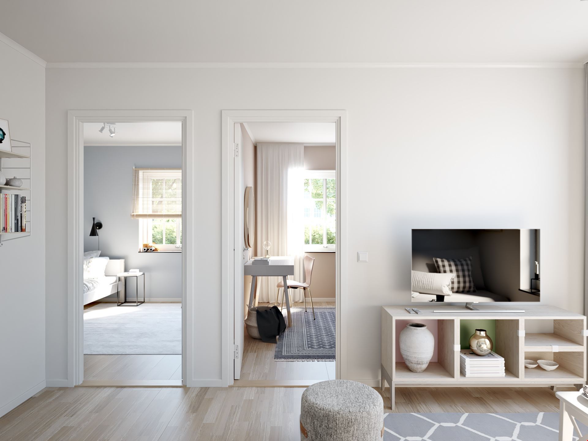 Tre välplanerade sovrum ger plats för hela familjen, och det finns möjlighet att skapa ett fjärde rum om behovet uppstår. Två badrum gör morgonrutinerna smidiga, och den praktiska groventrén med tvätt är en favorit hos barnfamiljer och aktiva livsstilar.
