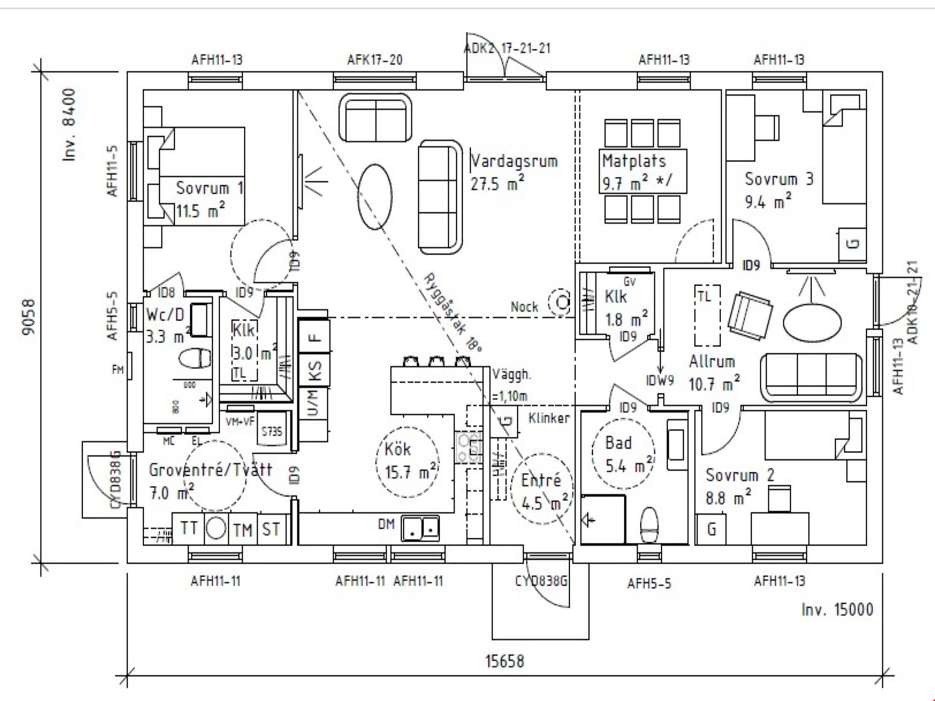Ryggåstak som ger en härlig rymd och modern känsla.