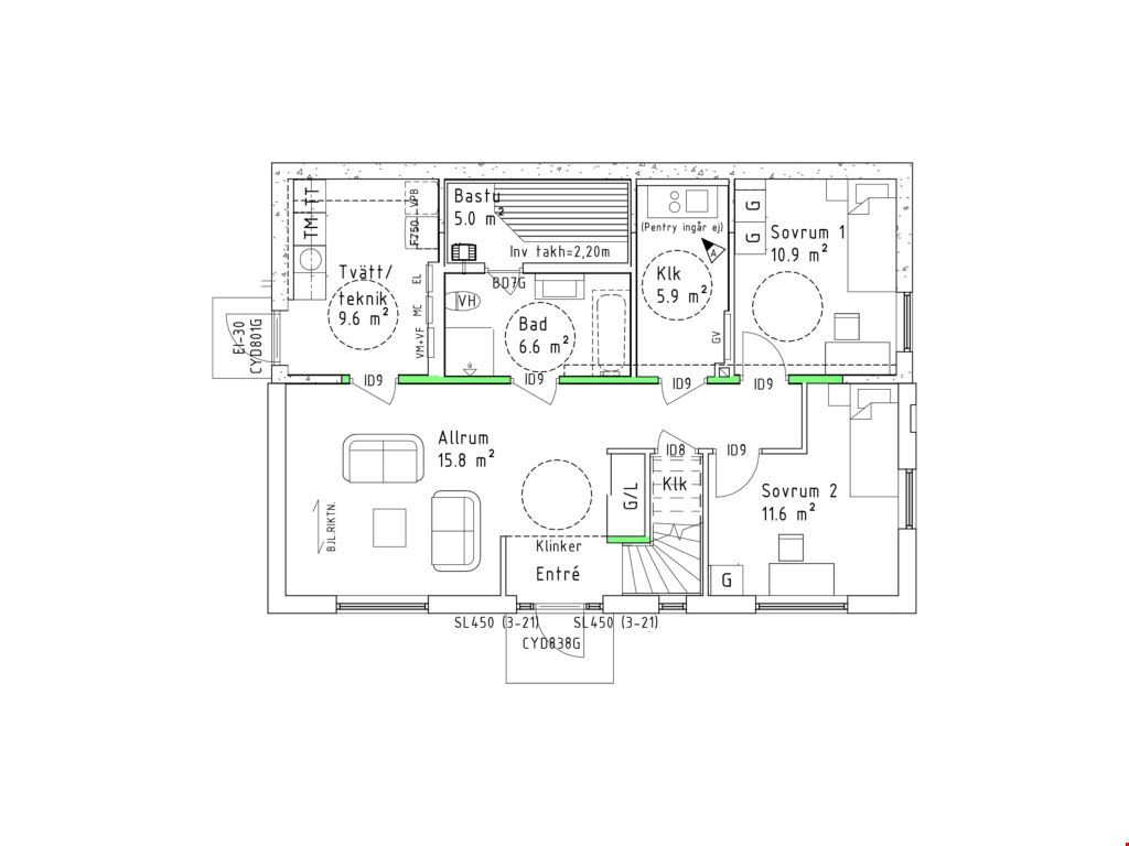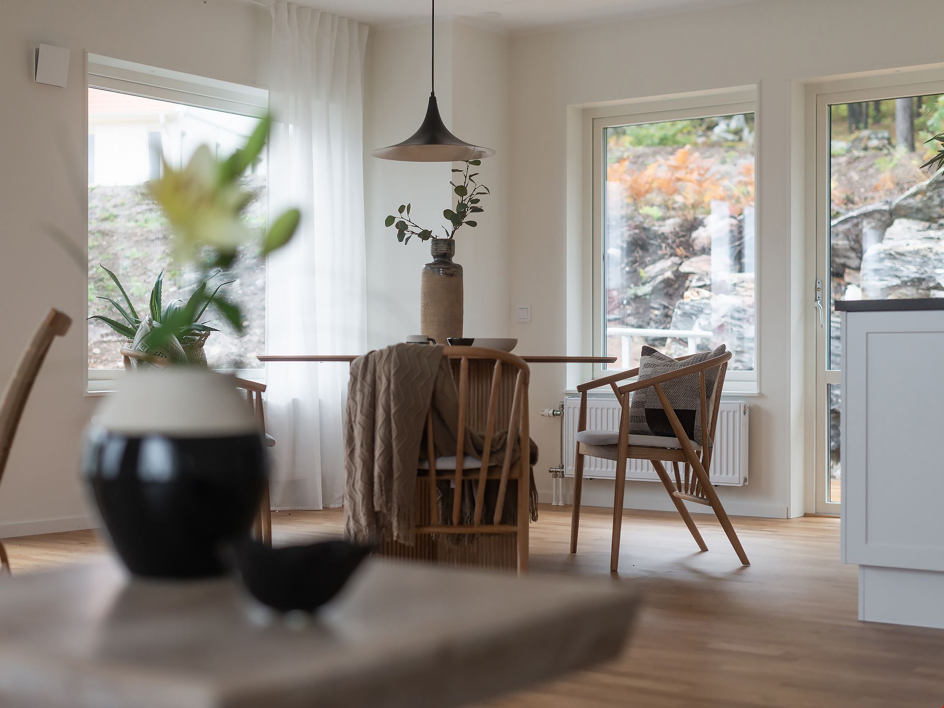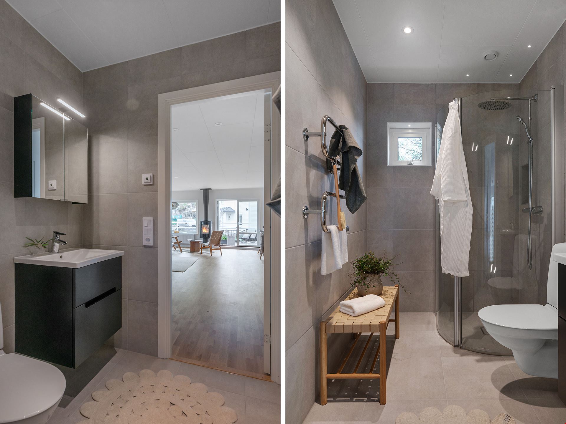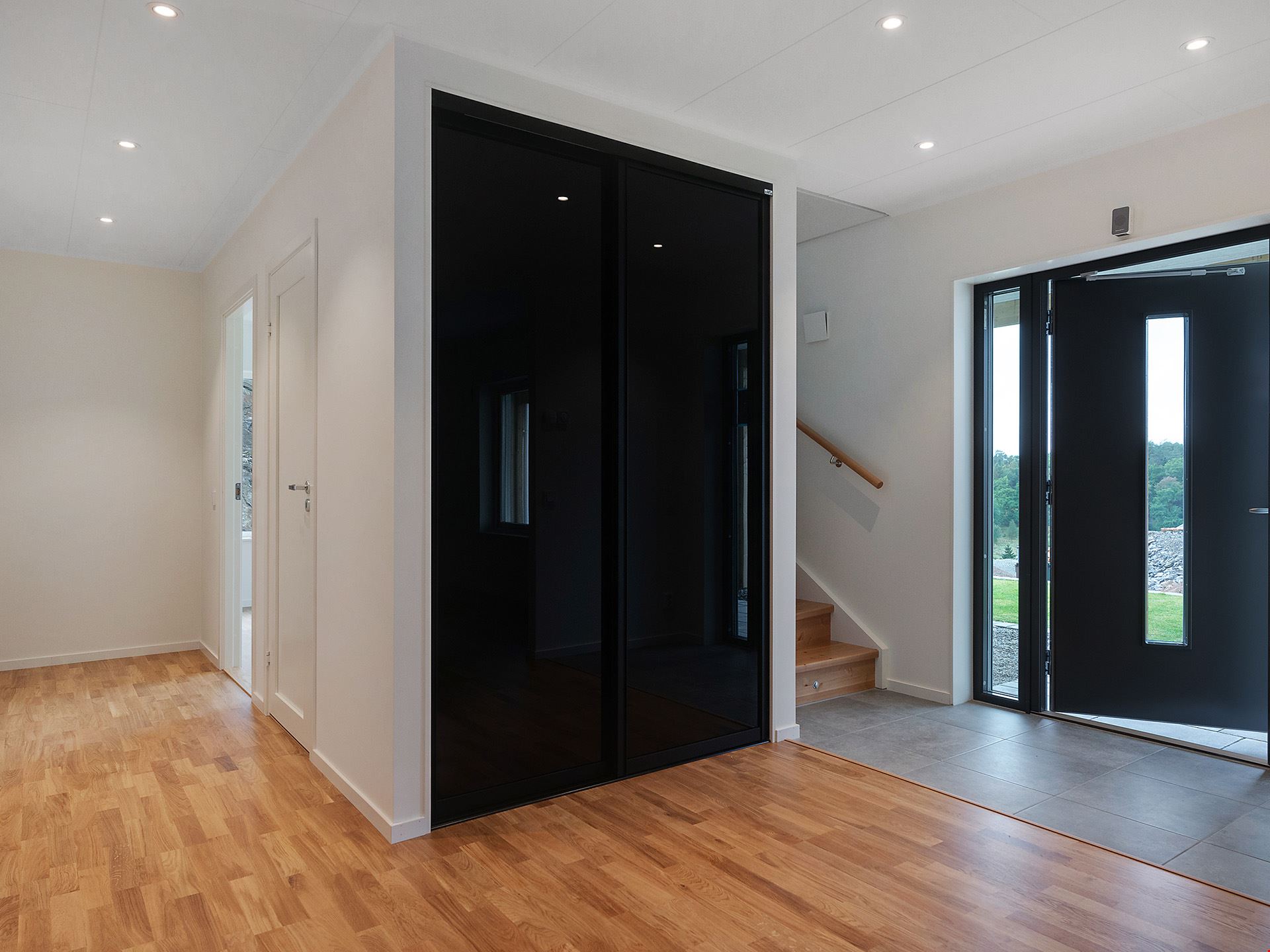 Välkommen in i denna nyproducerade villa som utgår från modellen Smart 149, men här med en anpassad planlösning. Huset har 6 rum och kök fördelat på 158 välplanerade kvadratmeter. Entrén finner du på det nedre våningsplanet. Här hittar du 2 av husets totalt 4 sovrum samt ett trevligt allrum. Här hittar du också en rymlig tvättstuga, klädkammare, ett badrum samt bastu. Badrummet är inrett med kakel och klinker, duschhörn samt svart kommod.
