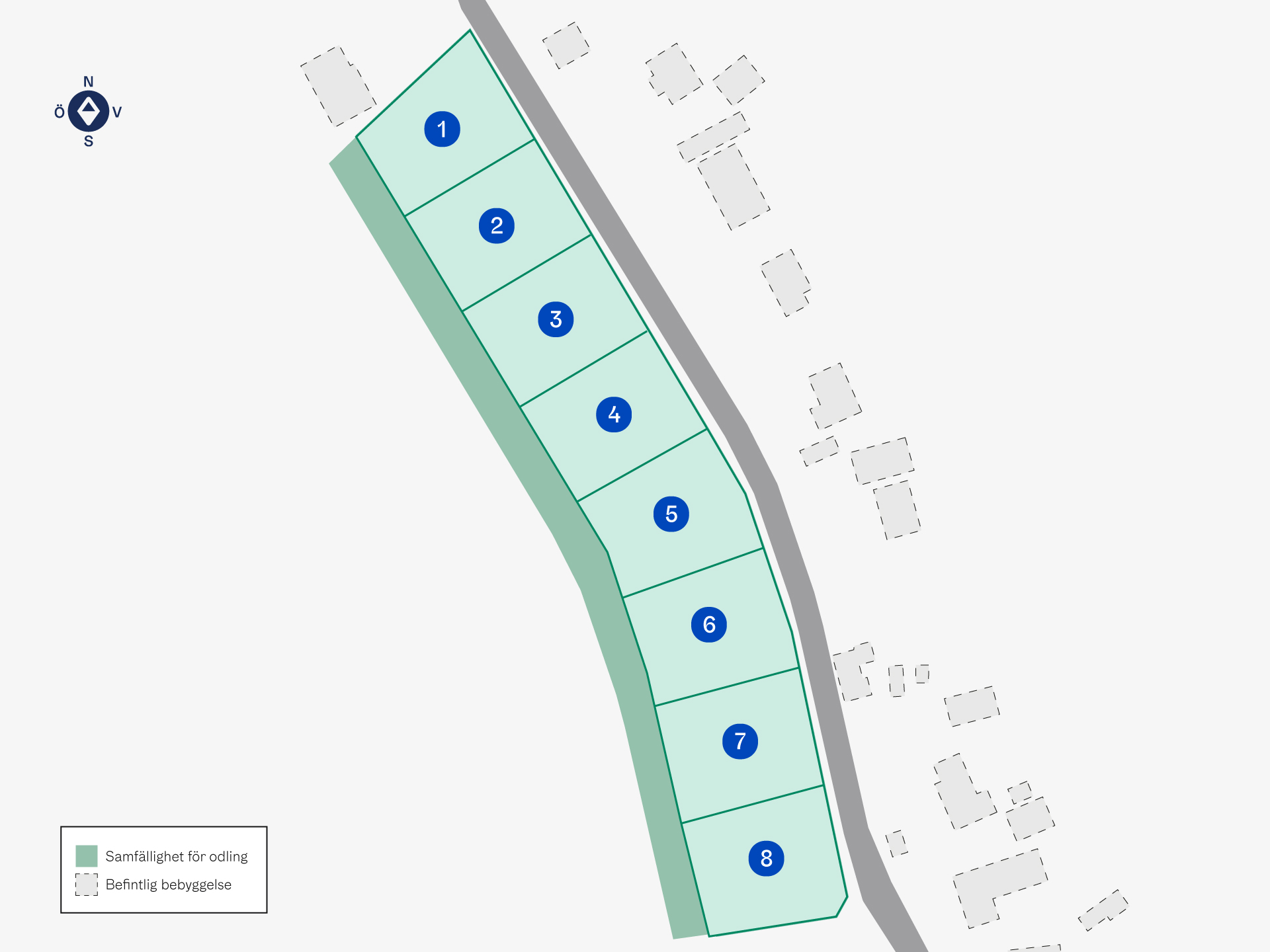 Till priset tillkommer Kommunalt va, el samt mark och grundarbeten. Det finns en gemensamhetsanläggning för odlingslotter där varje tomt har ca 200 kvm mark för odling.