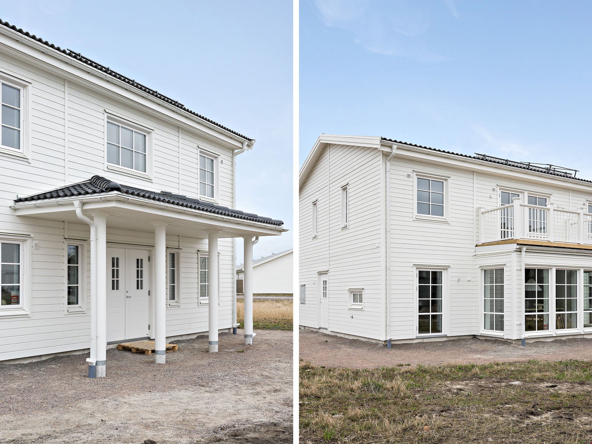 Välkommen in i denna nyproducerade 2-plansvilla i lantlig stil om 156 kvm fördelat på 6 rum och kök. Det här huset rymmer en större barnfamilj. Huset planlösningen är modern med kök och vardagsrum i öppet samband på entréplanet. Ett sovrum ligger på samma plan som sällskapsytorna och ytterligare tre generösa sovrum ligger på övervåningen.