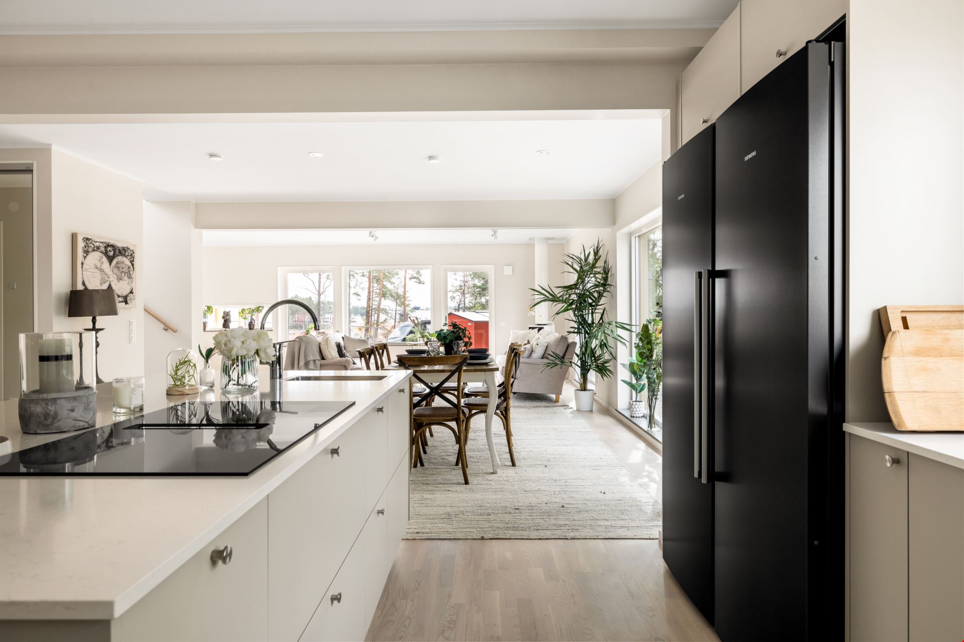 Här erbjuder vi en tvåplansvilla om hela 186 kvadratmeter med ett luftigt och modernt uttryck, inspirerat av vår husfavorit Stångskär men anpassat efter just den här platsen. Huset välkomnar dig med en ljus entré som bjuder in till en väl tilltagen social yta där kök och vardagsrum samspelar perfekt. Från köket når du även klädvårdsutrymmet med praktisk groventré. På övervåningen väntar en privat oas med fyra rymliga sovrum, ett generöst allrum och ett stort badrum. Master bedroom har två walk-in-closet och fransk balkong. Behöver ni ett femte sovrum? Då kan vardagsrummet delas av för att skapa ett sådant.
