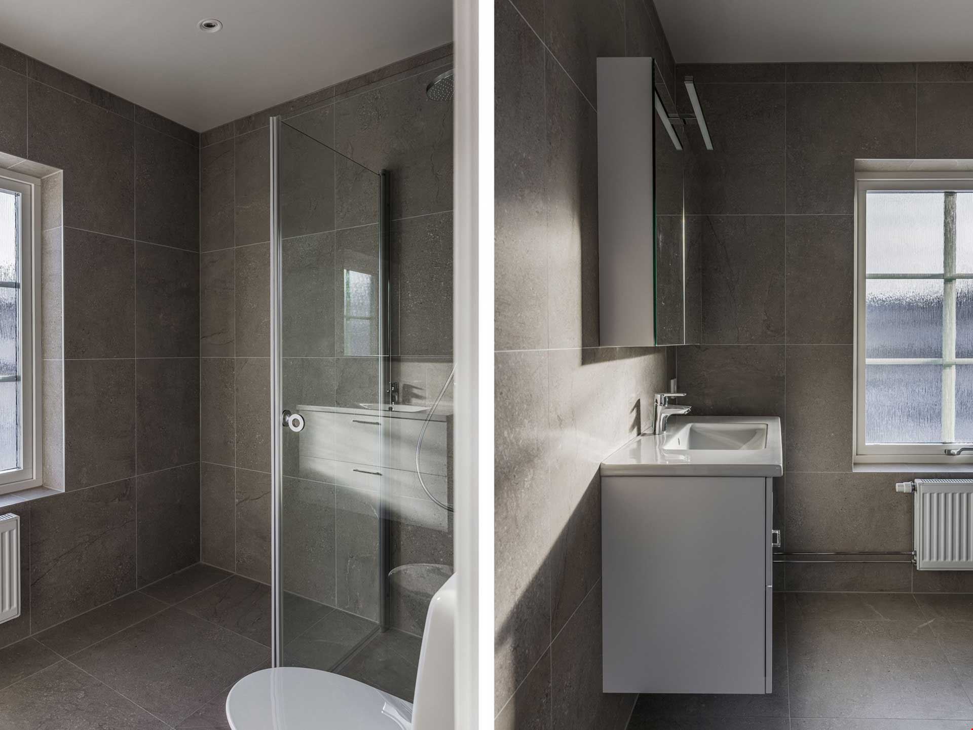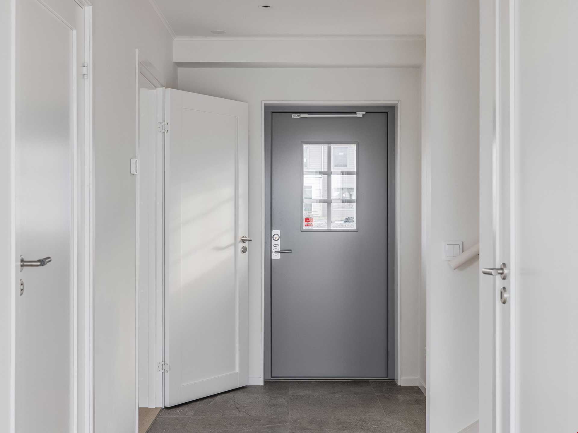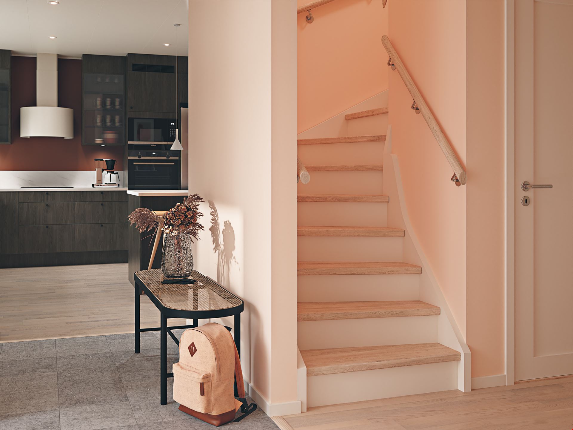 Den centralt placerade trappan ger ett fint flöde genom hela huset, och intill entrén finns både tvättstuga och groventré – praktiskt när livet är på språng.