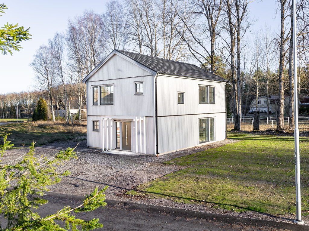 Kom och upplev detta moderna hem i verkligheten – vi finns på plats för att svara på alla dina frågor.