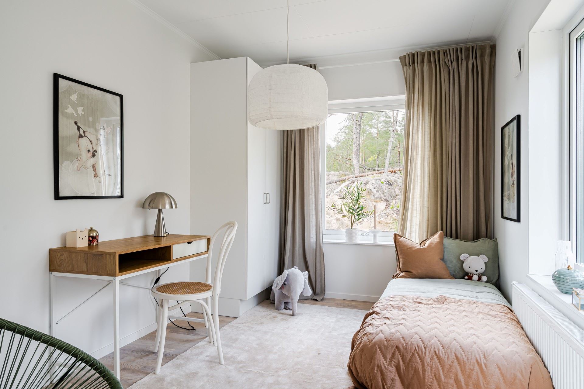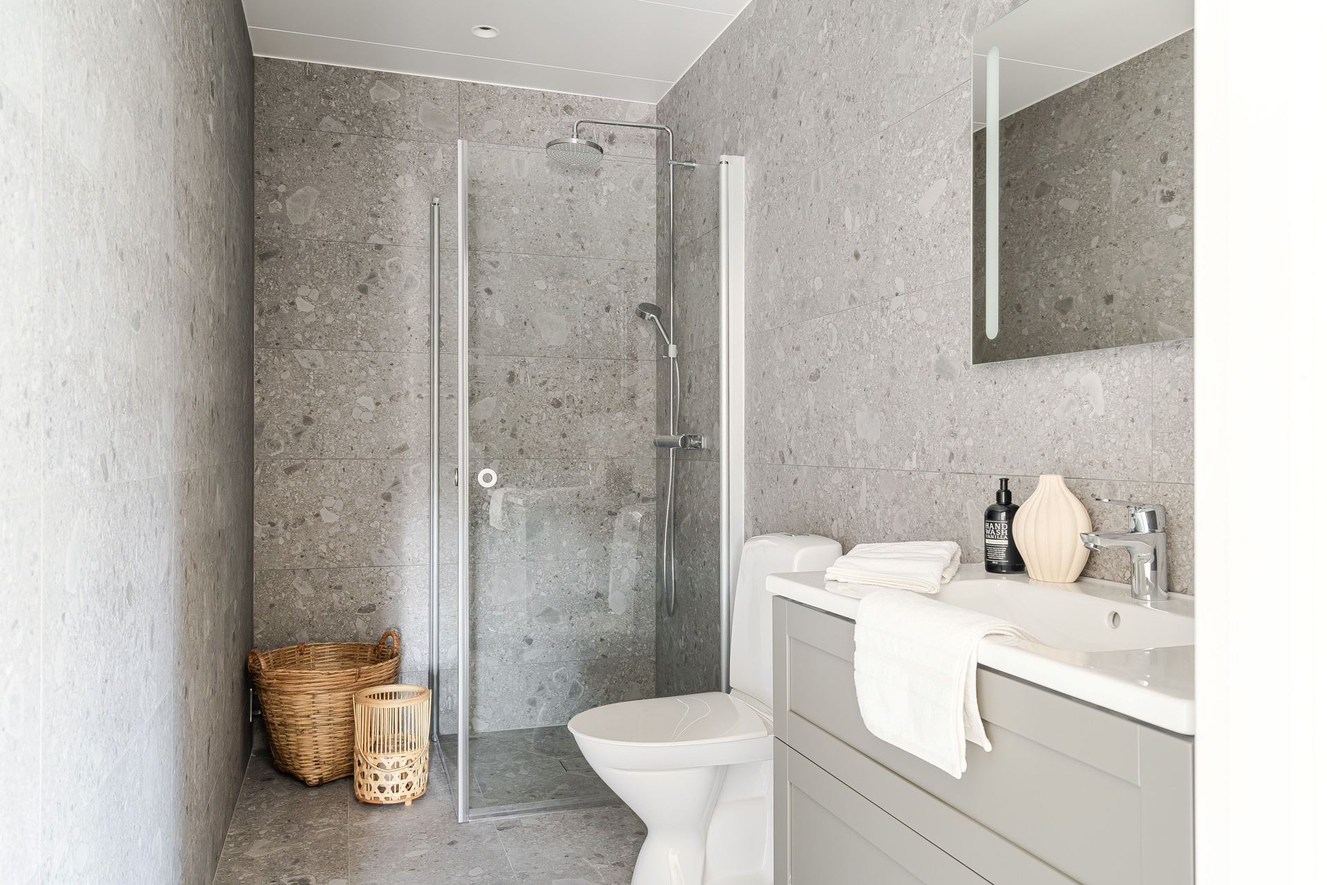 En trappa upp väntar tre rymliga sovrum, ett allrum och ett stilrent badrum. Master bedroom har dessutom en egen walk-in-closet – eller varför inte ett hemmakontor?