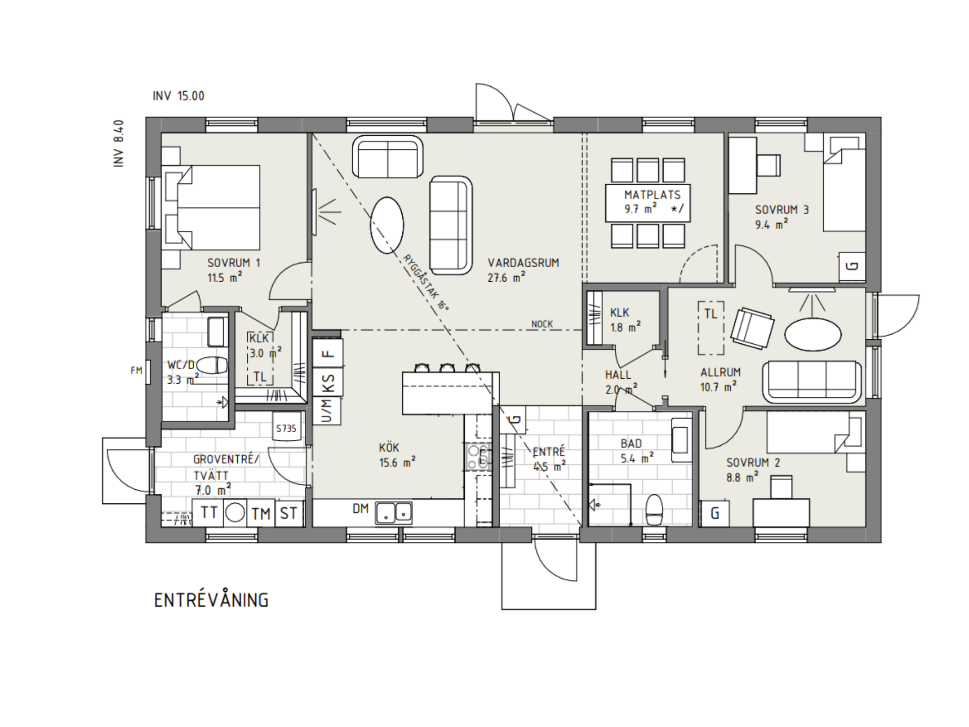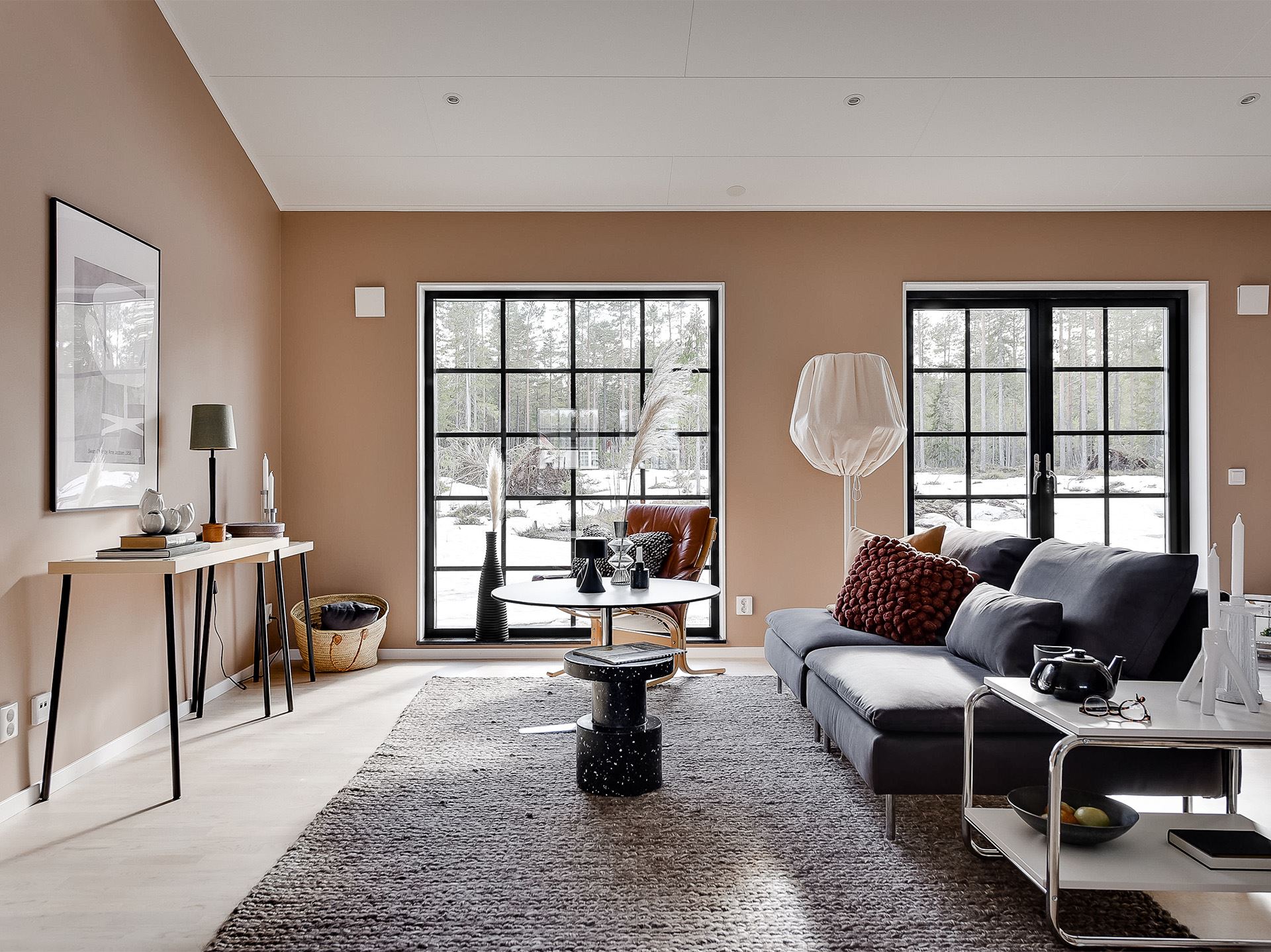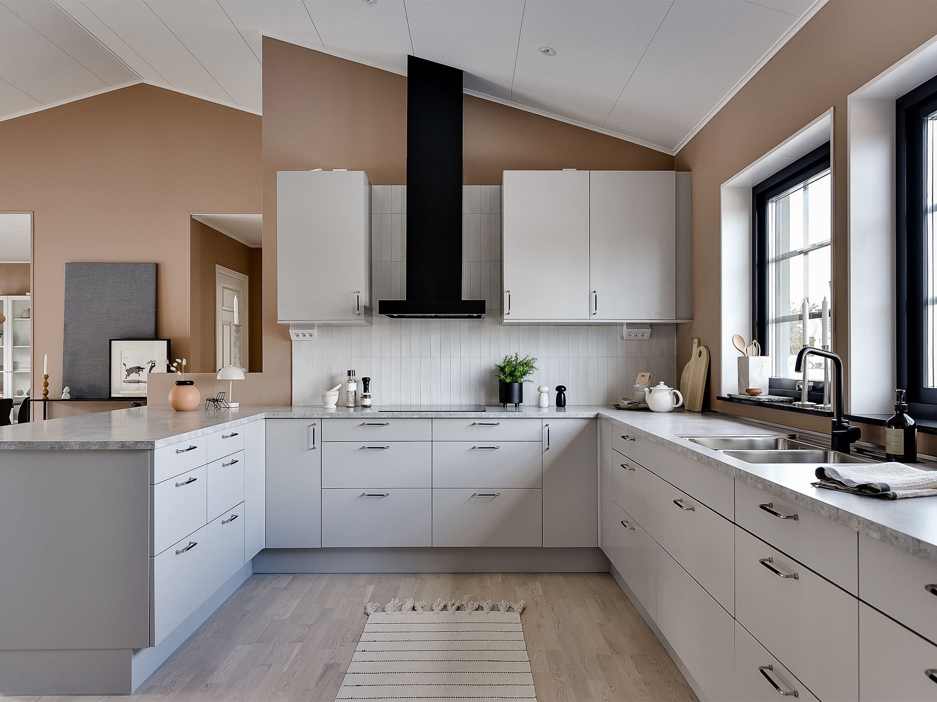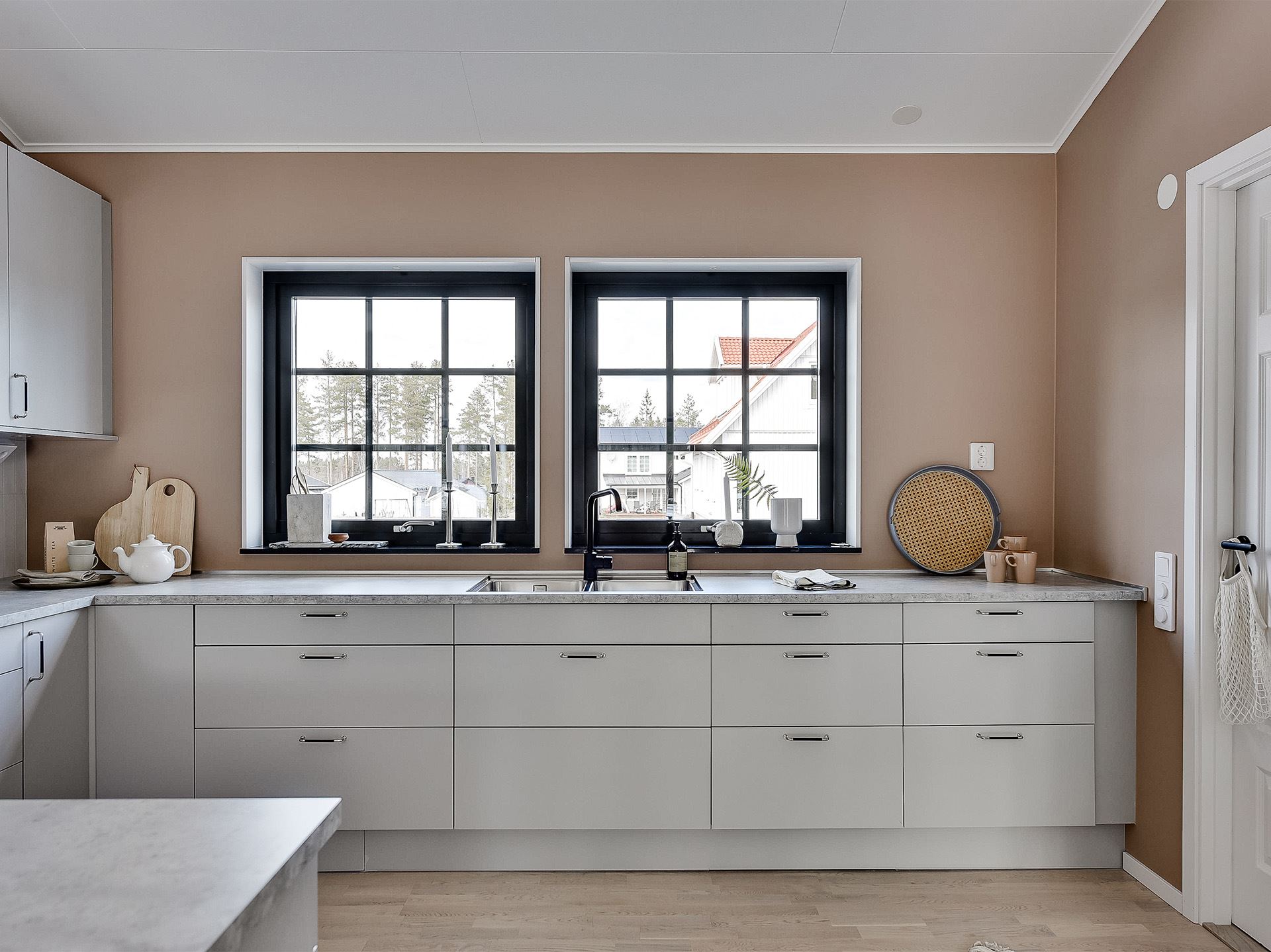 Det här huset är designat för att ge en luftig och öppen känsla, med en central umgängesdel där köket och vardagsrummet smälter samman. Den öppna bardelen skapar en social plats för både vardag och fest, och de stora fönsterpartierna ger ett fantastiskt ljusinsläpp.